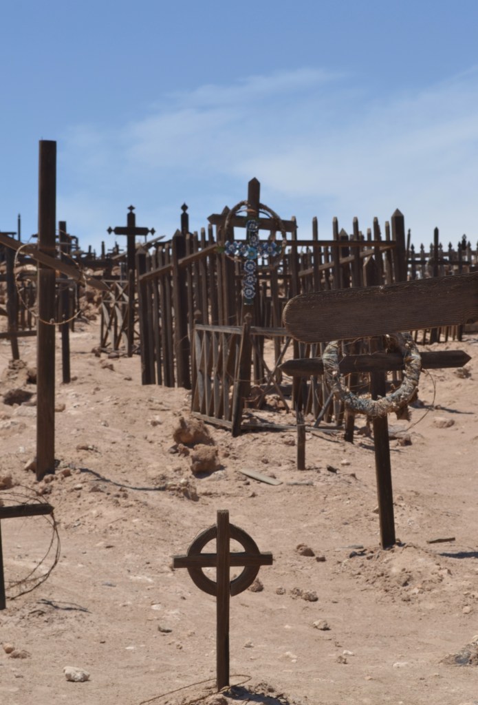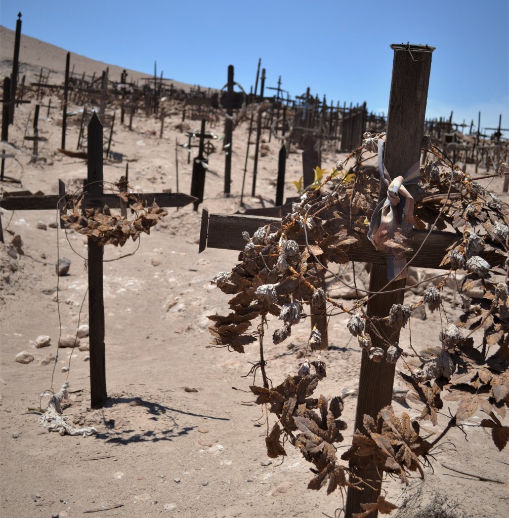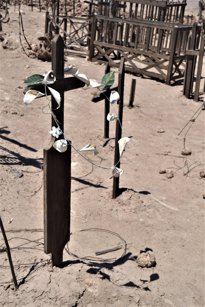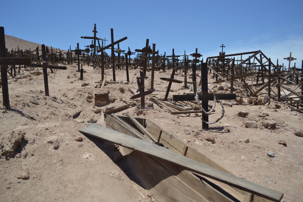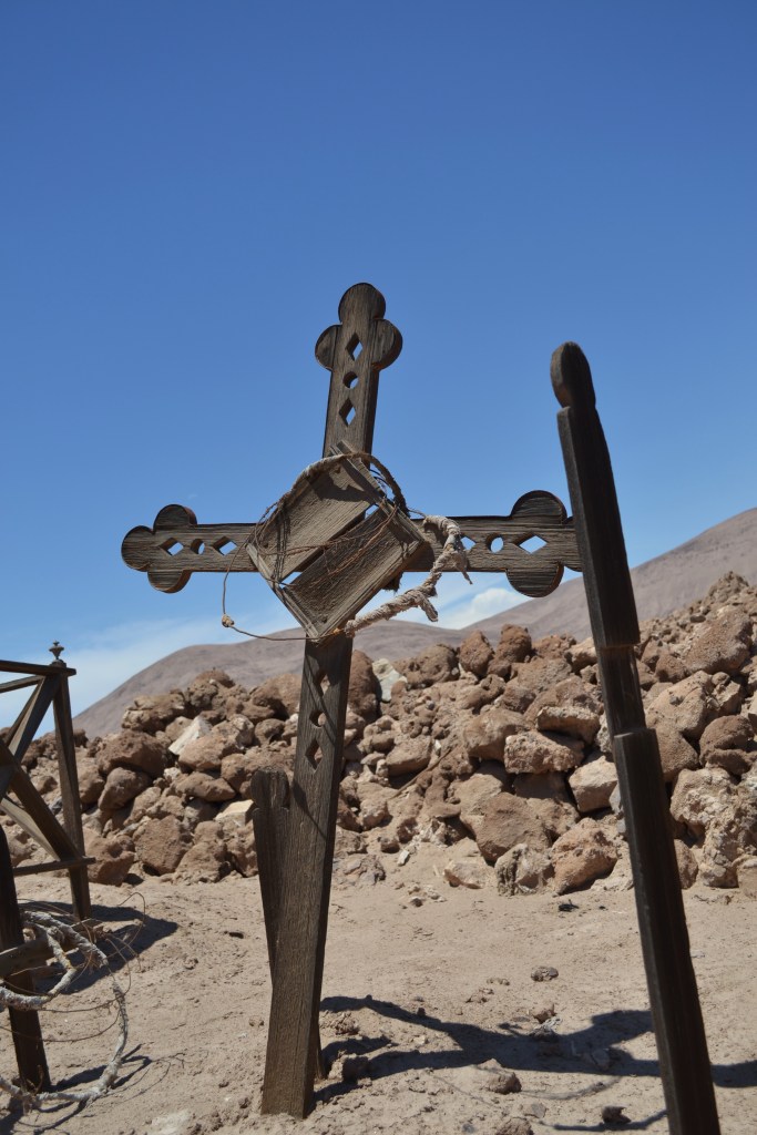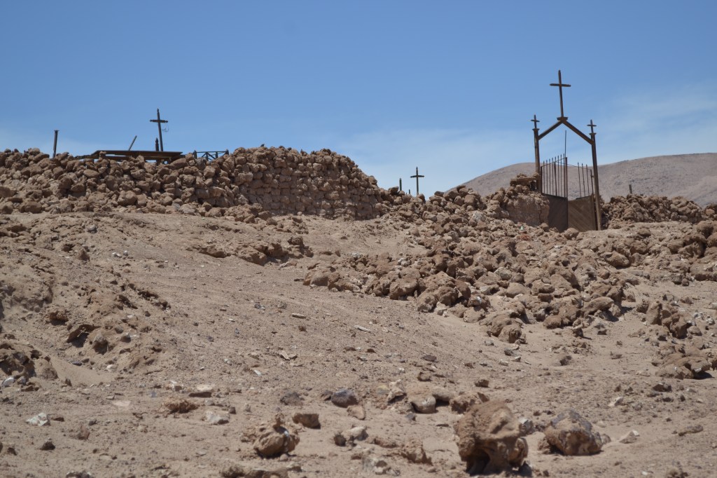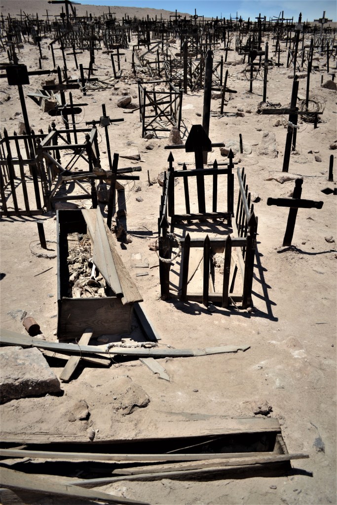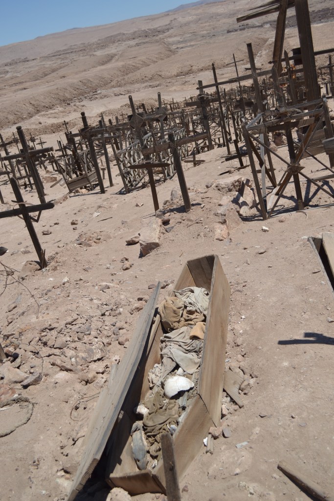 Al llegar hay una reja, que parece que siempre está abierta. Me sentí bienvenida, como cuando visitas a esos abuelitos que nunca reciben a nadie en su casa y se emocionan al verte. No sentí miedo – soy muy poco miedosa de estas cosas -, sino angustia por tanto abandono. Me da tristeza la soledad y todo lo que la evoque. Probablemente estas personas que ahí yacen fueron olvidadas por las siguientes generaciones. Lamenté que algunas tumbas estuviesen profanadas, pero no culpo a nadie, porque de verdad creo que acá hubo principalmente acción de la naturaleza, viento, desierto, frío y calor, incluso animales silvestres. O todo junto.